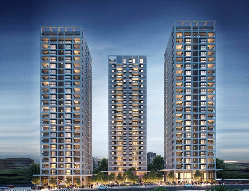 • Three iconic 24-story luxury towers